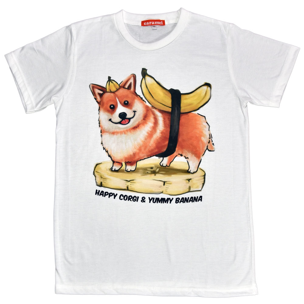 Happy Corgi and Yummy Banana Unisex Graphic T-shirt